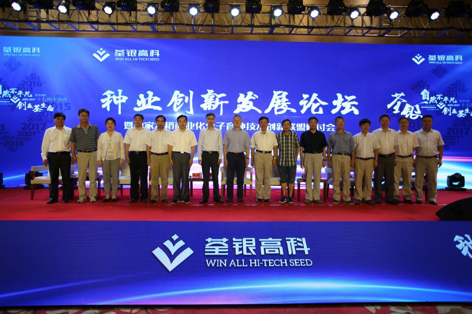 十五載風雨兼程,十五載春華秋實!2017年8月29日,科企合作戰略簽約儀式·種業創新發展論壇暨荃銀高科成立15周年慶典大會在合肥隆重舉行。農業部種子局局長張延秋,農業部科教司司長廖西元,中國科學院院士、國家基因研究中心主任、上海植生生態所所長韓斌,中國種子協會副會長兼秘書長蔣協新,安徽省科技廳廳長宛曉春,安徽省農業委員會副主任周世其、朱永東,“中國種業十大功勛人物”、荃銀高科創始人、安徽張海銀基金會理事長張海銀先生,以及來自農業部、中國種子協會和省、市有關部門的領導、專家、嘉賓,國家水稻商業化分子育種技術創新聯盟的科學家,戰略合作簽協單位代表,種業界同仁,還有來自印度尼西亞、孟加拉、巴基斯坦、越南等國家的20多位外賓朋友,計500多人參加了此次活動。
